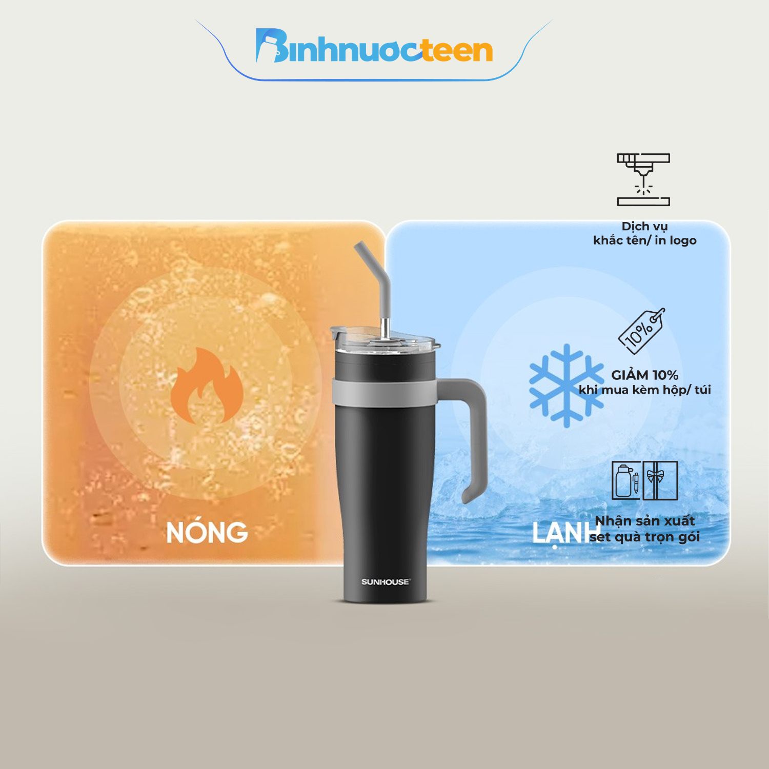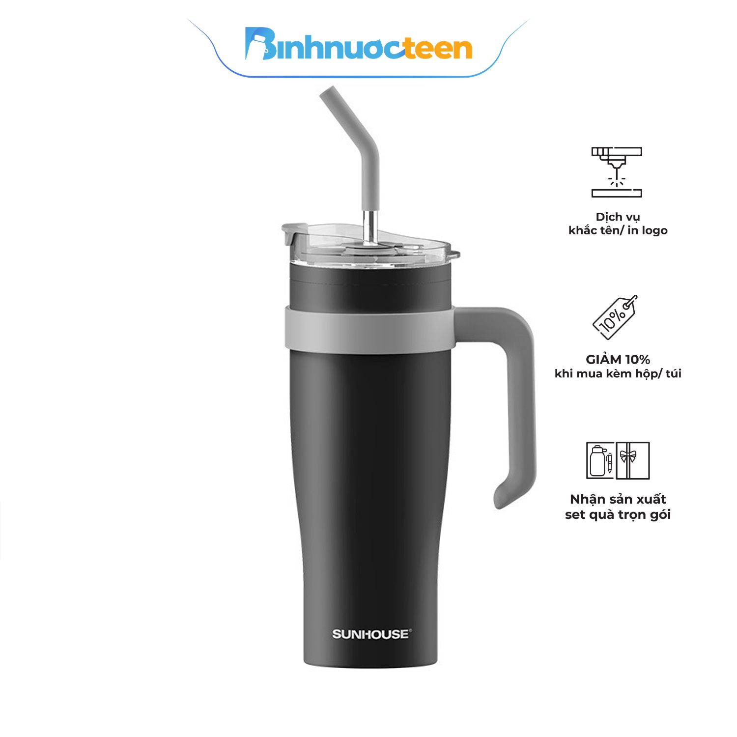 Binhnuocteen nhận IN LOGO, KHẮC TÊN lên bình giữ nhiệt Sunhouse theo yêu cầu.