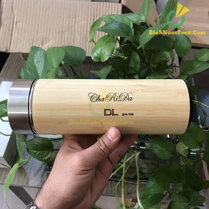 Binhnuocteen cung cấp bình giữ nhiệt vỏ tre khắc tên, bình giữ nhiệt khắc logo theo yêu cầu.